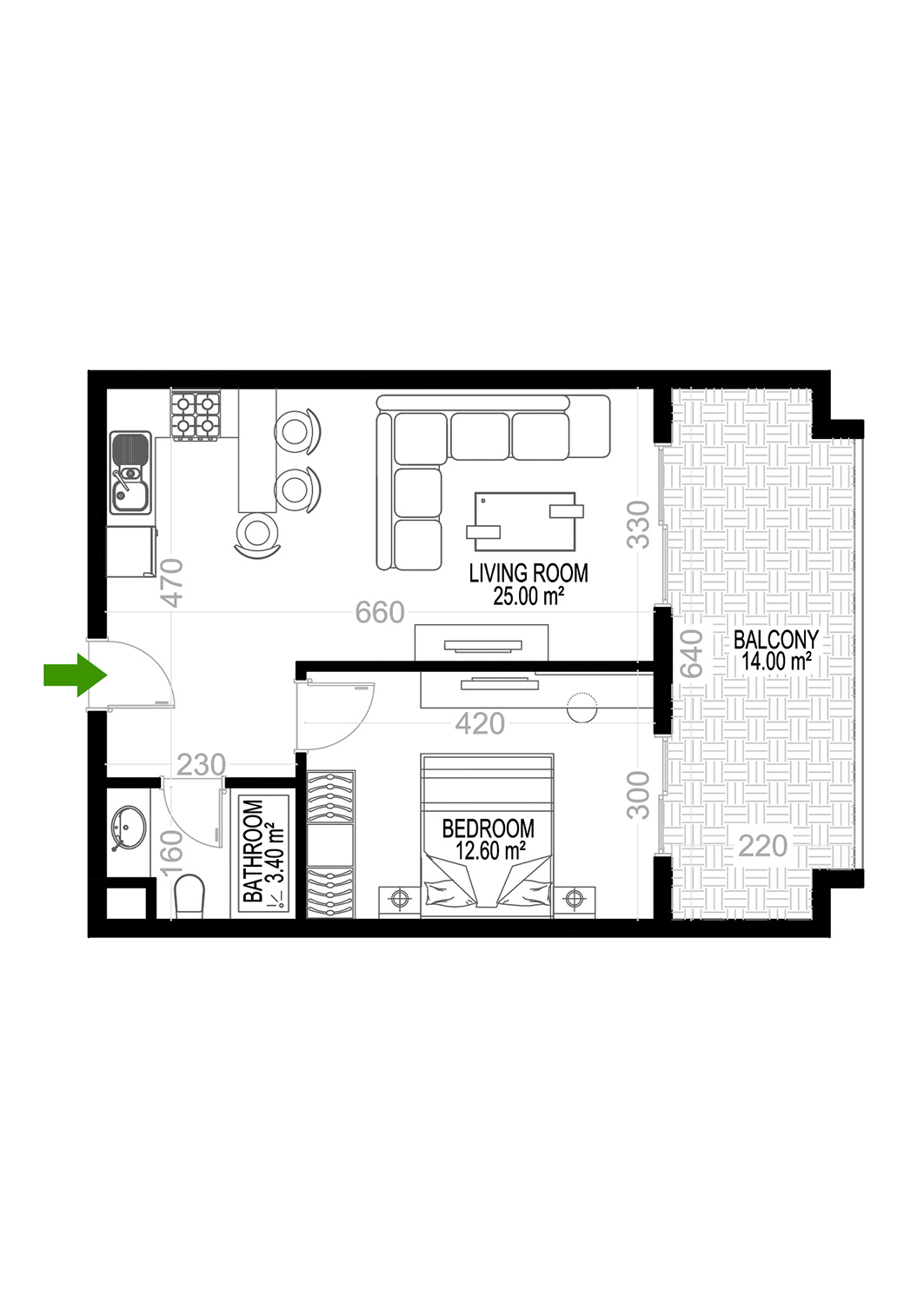 Yekta Kingdom Premium D 1+1 boligplan Nr №46 68 kvm