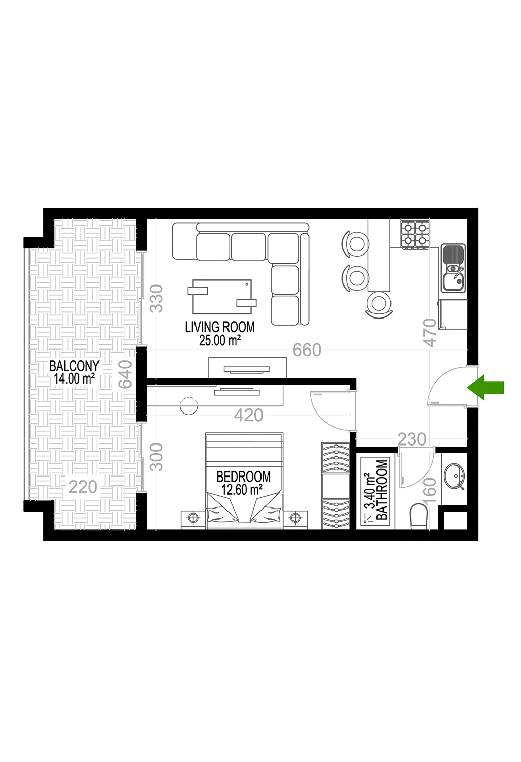 Yekta Kingdom Premium D 1+1 boligplan Nr №52 68 kvm