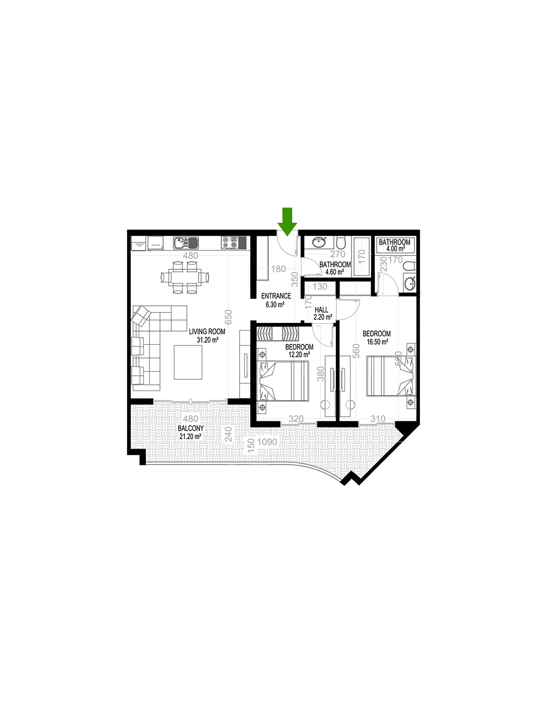 Yekta Kingdom Premium A 2+1 boligplan Nr №9 125.20 kvm