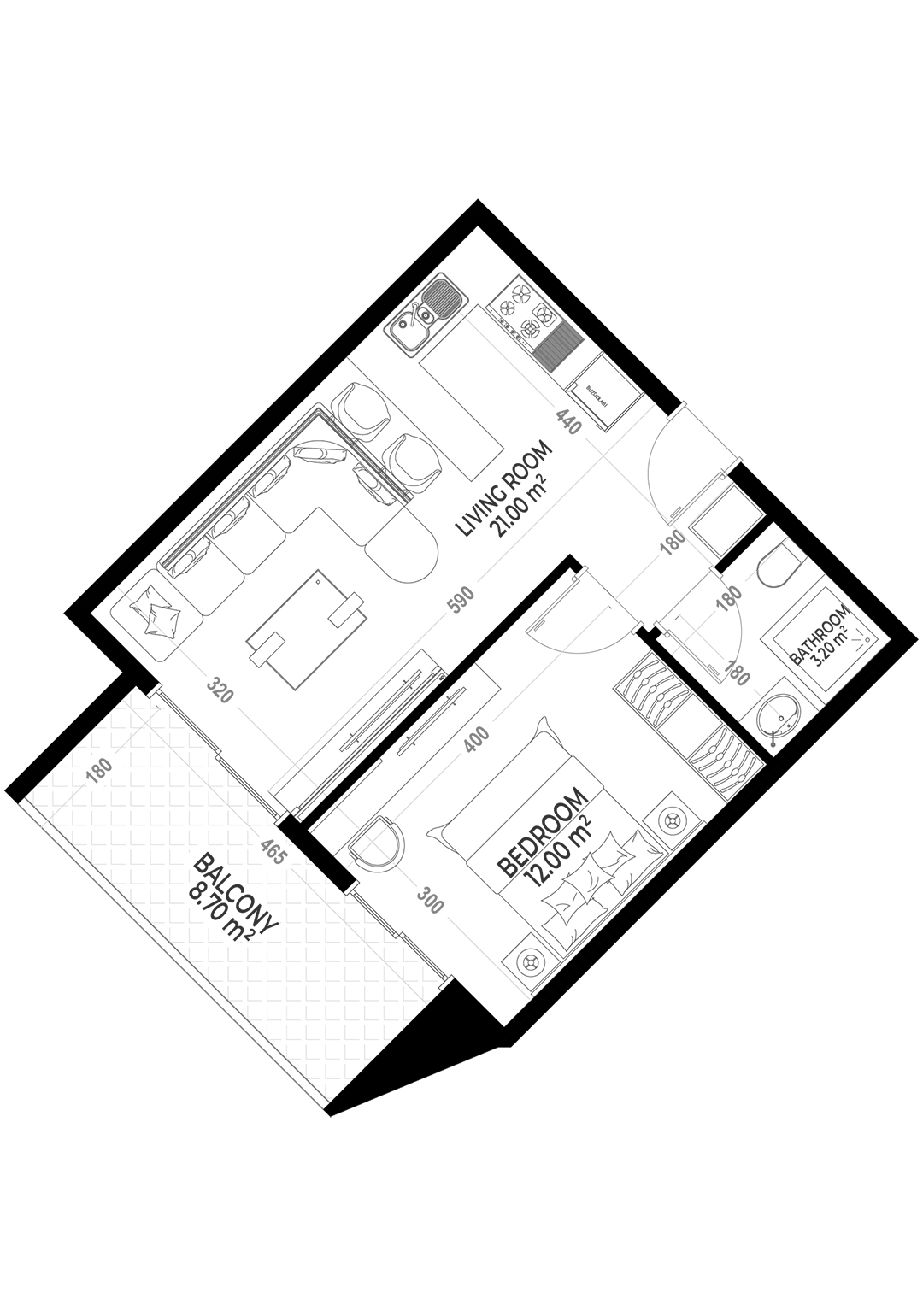Yekta Sunrise Residence 1+1 boligplan Nr 8 55 kvm