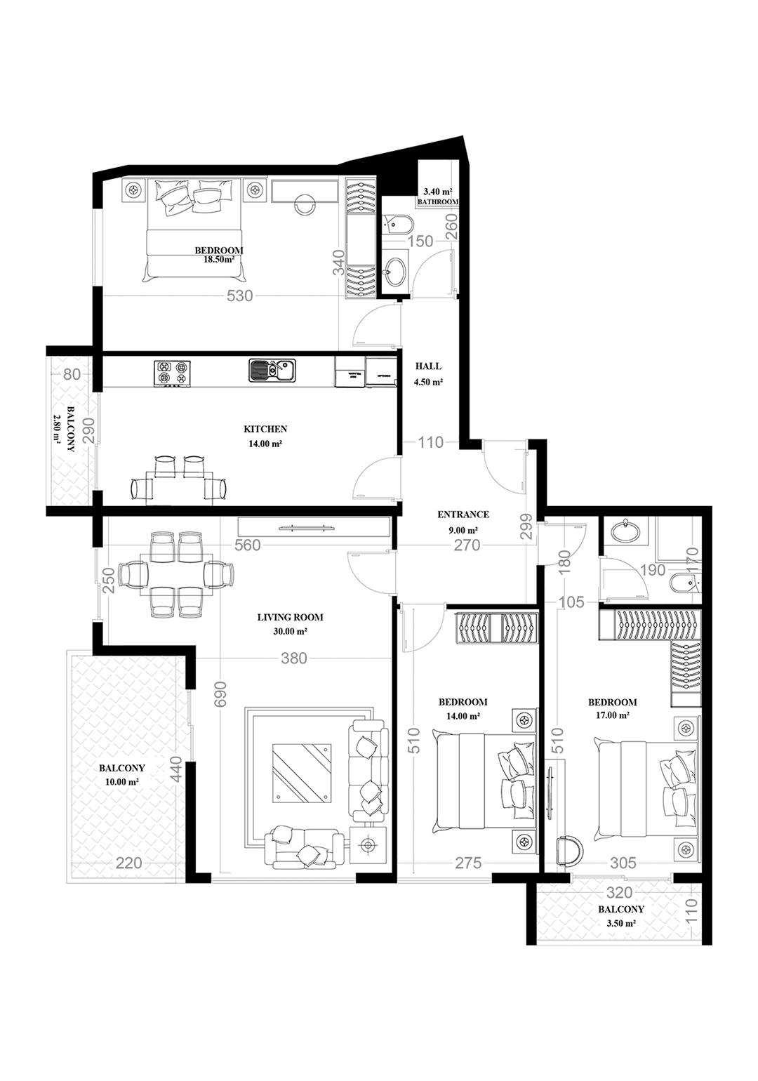 Yekta Alara City Residence 3+1 Wohnung Nr.15 159.60 m2