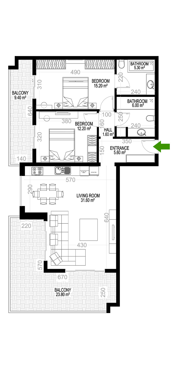 Yekta Kingdom Premium “E” 1+1 Home Plan Nr. 62 135.20 m2