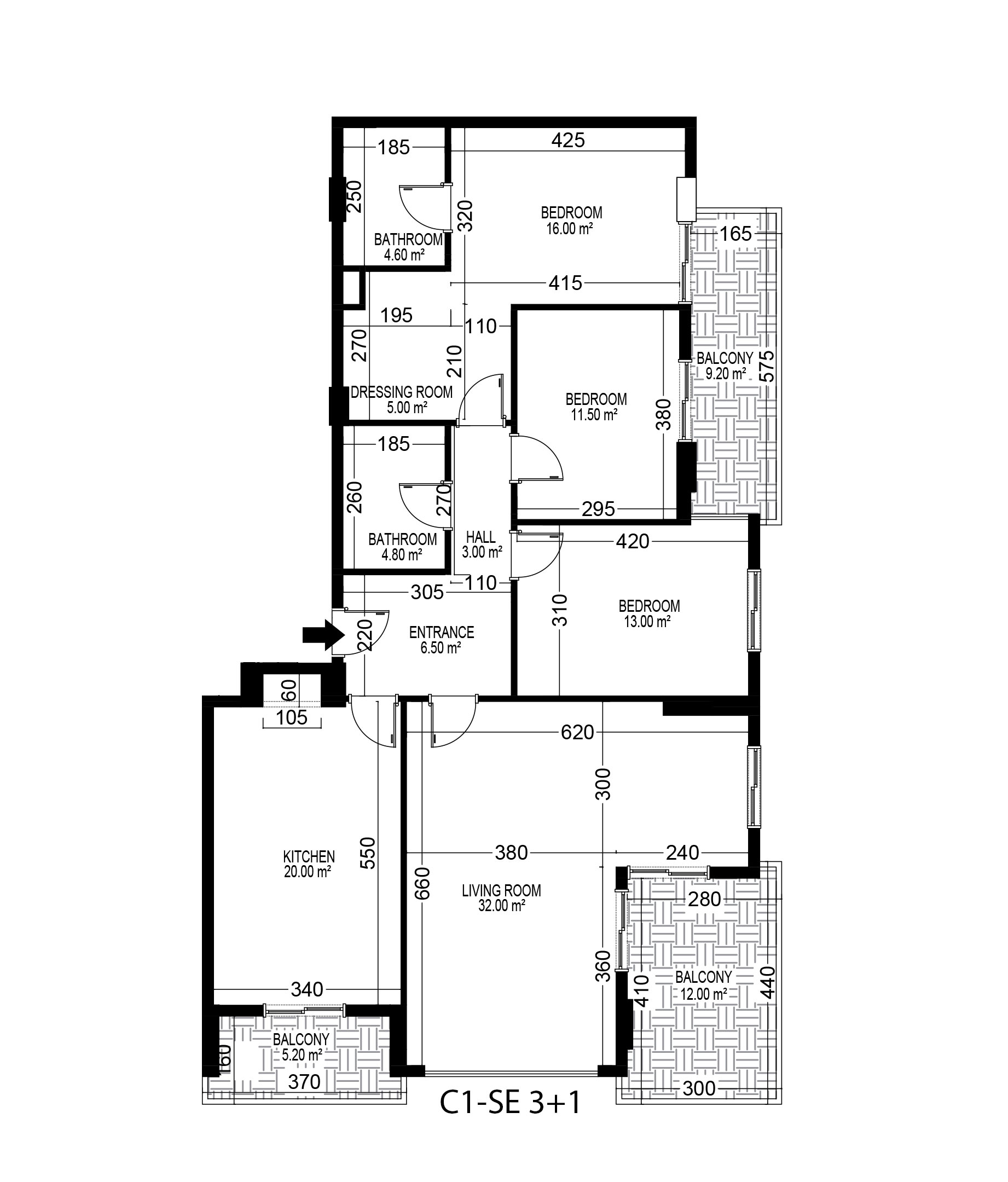 Yekta Alara Park Residence C 3+1 bolig plan Nr №3 186 kvm