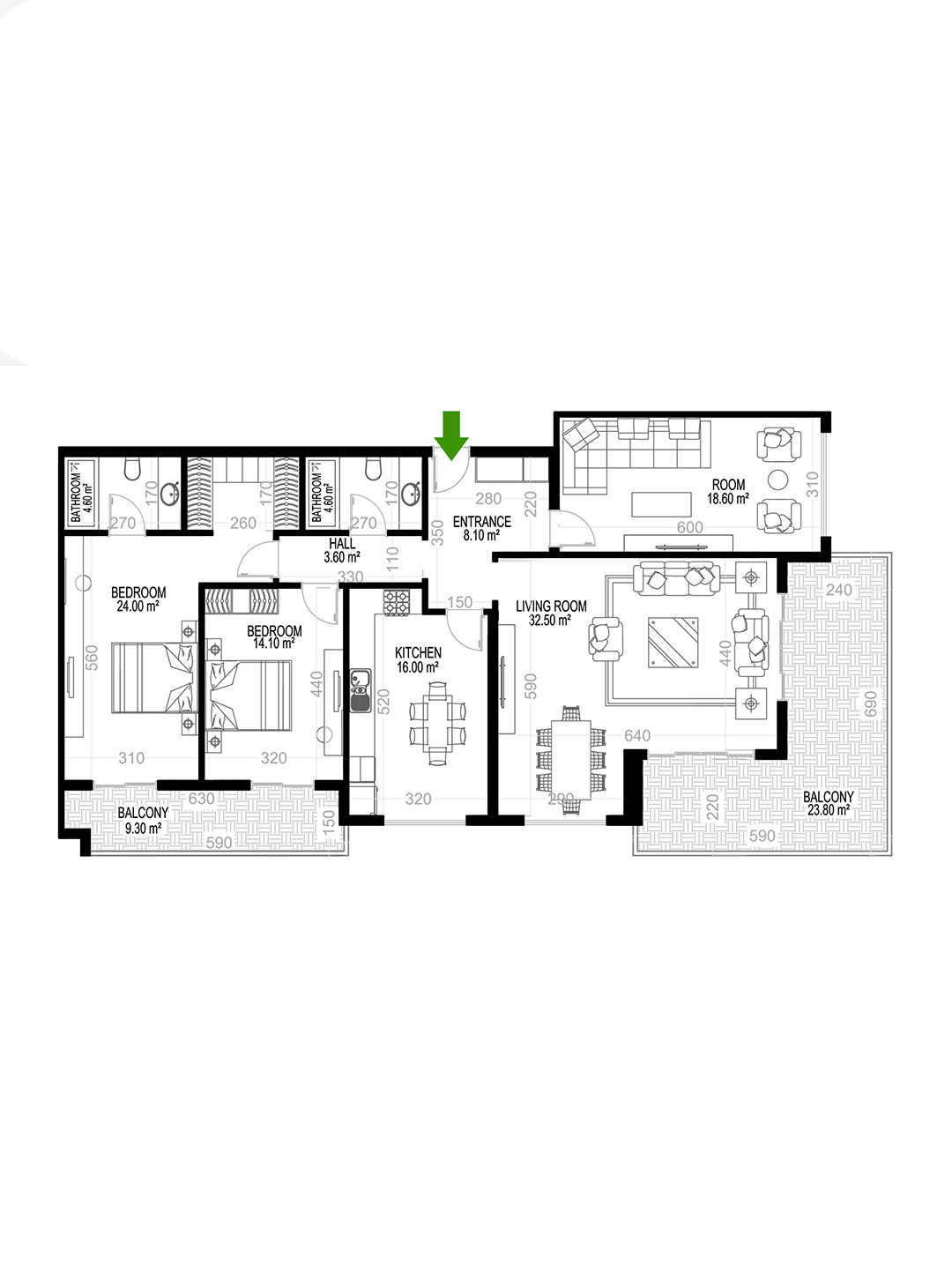 Yekta Kingdom Premium A 3+1 bolig plan Nr №3 201.10 kvm