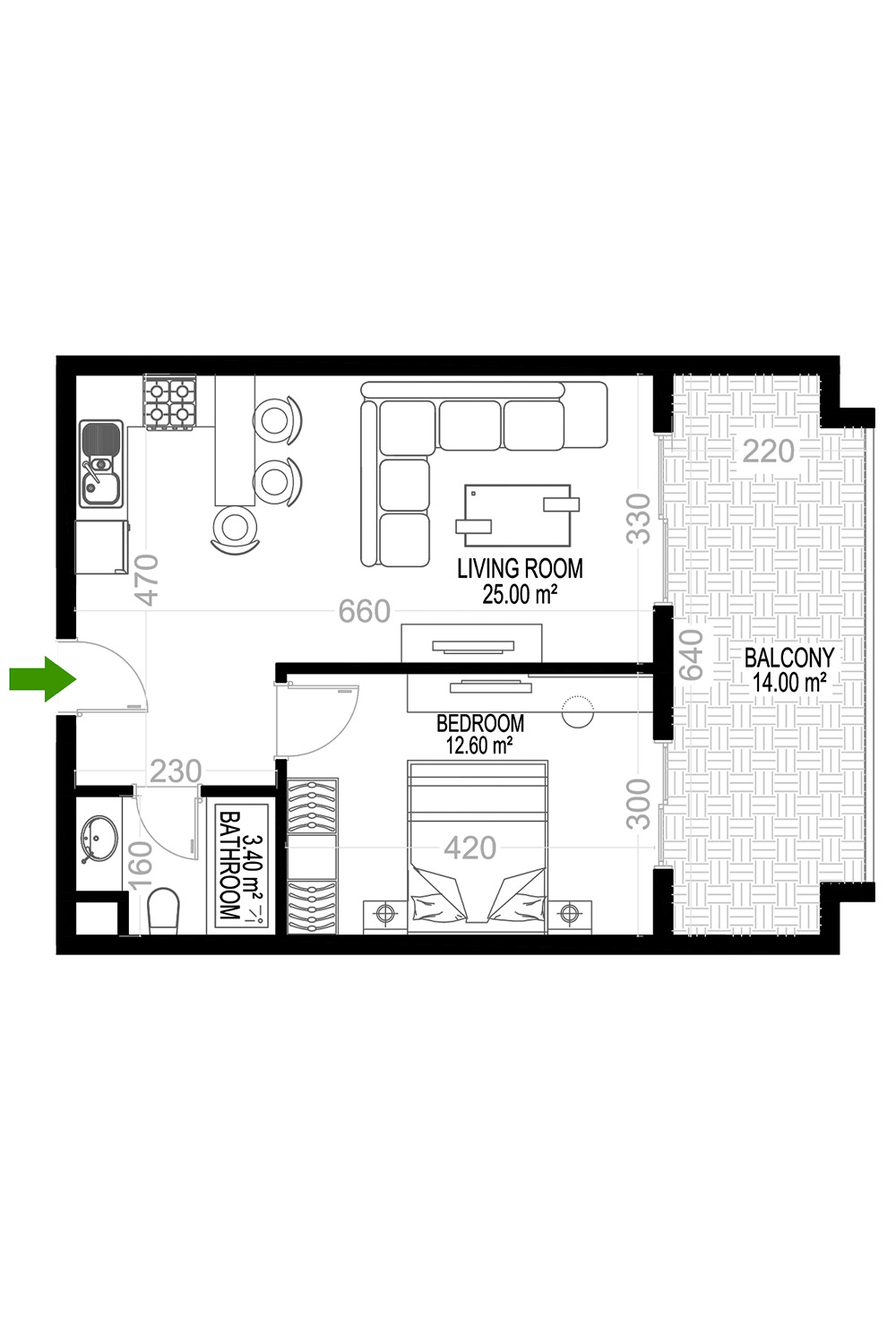 Yekta Kingdom Premium B 1+1 bolig plan Nr №30 68 kvm