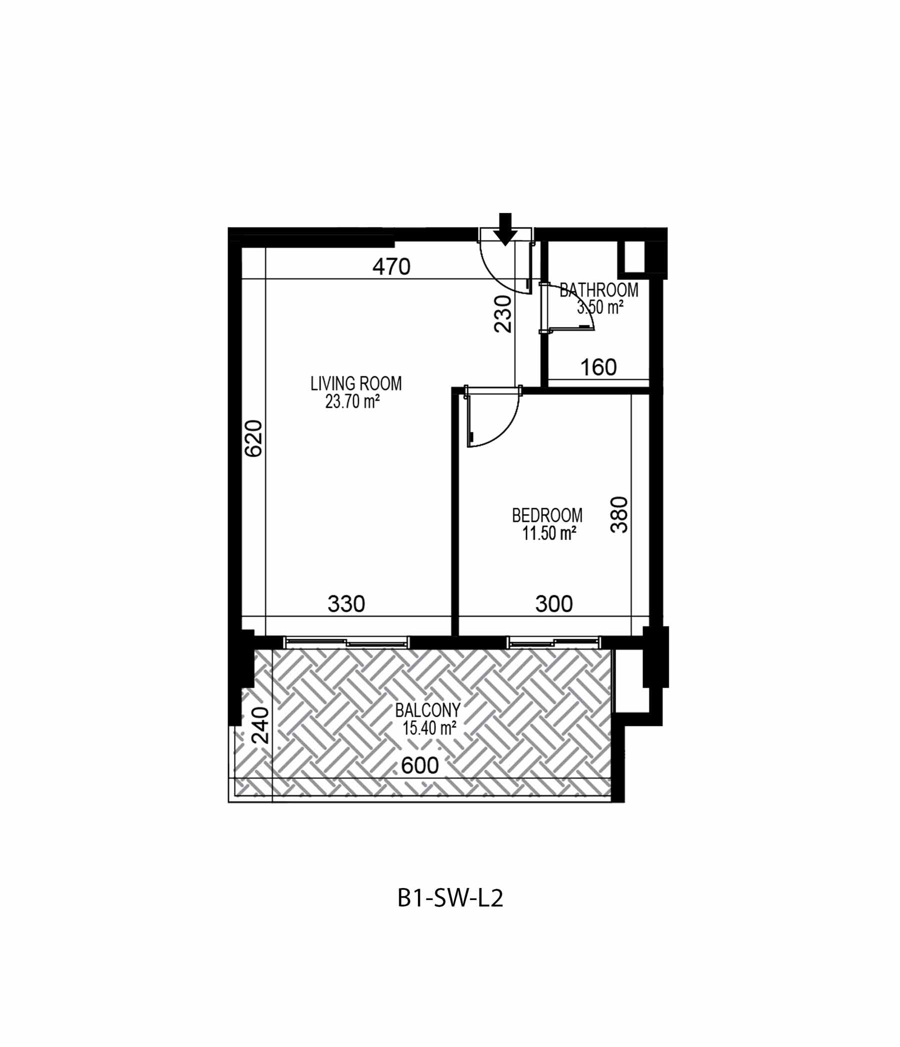 Yekta Alara Park Residence B 1+1 bostadsplan Nr №7 70 kvm