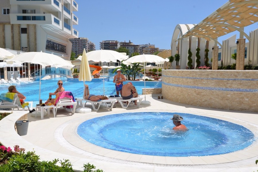 Dessa två majestätiska byggnader bildar vackra silhuetter mot de vackra och mäktiga Taurusbergen i bakgrunden. Yekta Towers ligger i en grön och lugn miljö med vackra Medelhavstränder, bara 350 meter bort. Härifrån är det gångavstånd till restauranger, butiker, underhållning, shopping, kaféer, basarer, apotek, banker etc.