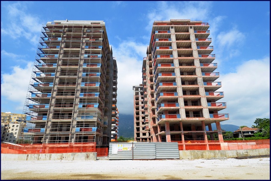 Denna hall har vi ett bostadsområde med två lyxiga høybygg i den lugna och allt populärare stadsdelen Mahmutlar, bara några kilometer öster om den livliga semesterorten Alanya.