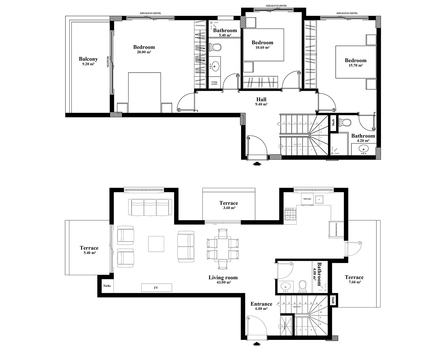 Yekta Blue IV Residence 3+1 bostadsplan Nr 14 113.40 kvm