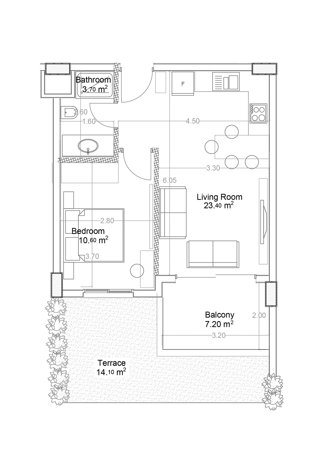 Yekta Green Life Gazipasa Residence B 1+1 bostadsplan Nr 6 64.60 kvm