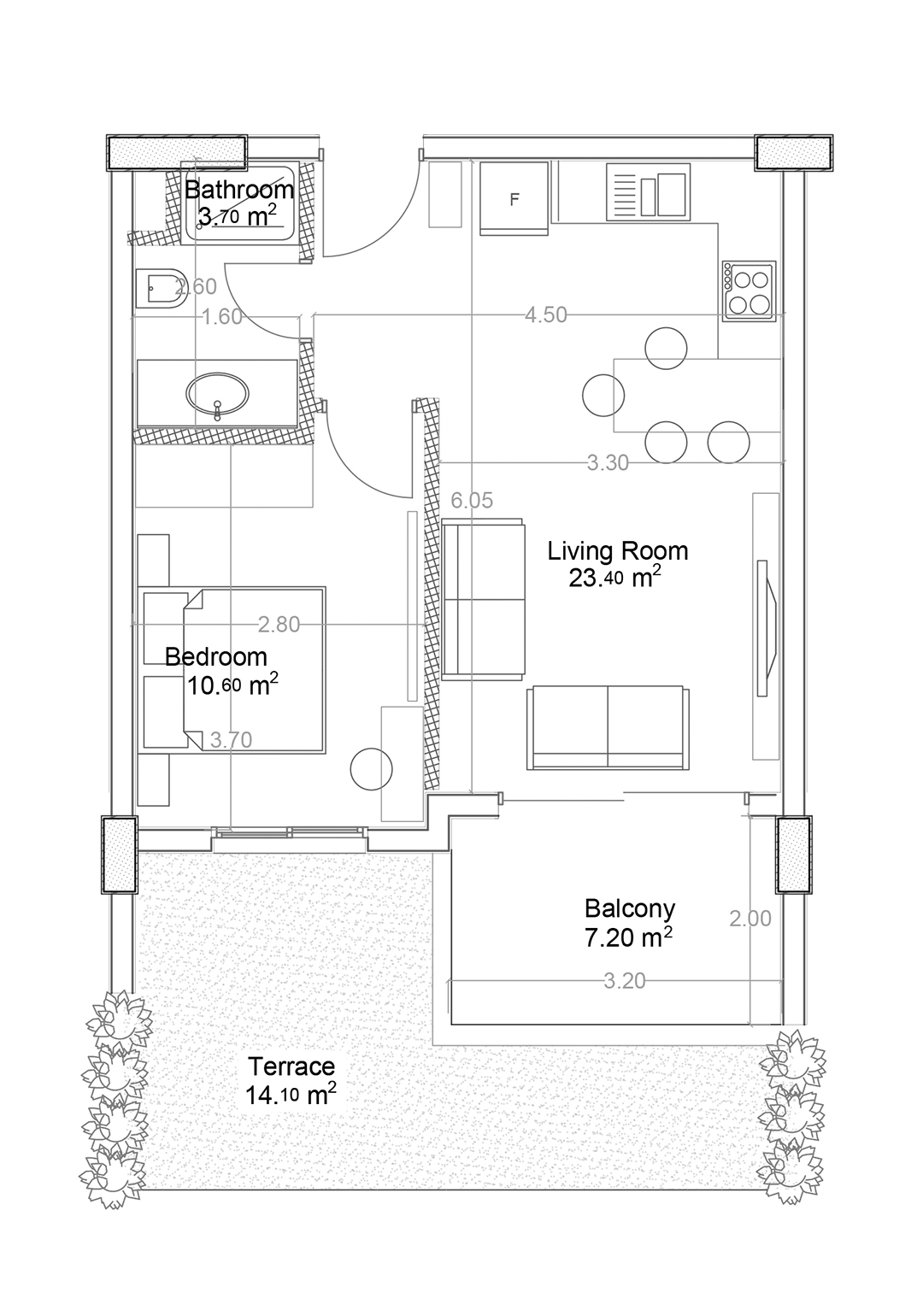Yekta Green Life Gazipasa Residence B 1+1 bostadsplan Nr 8 65.70 kvm