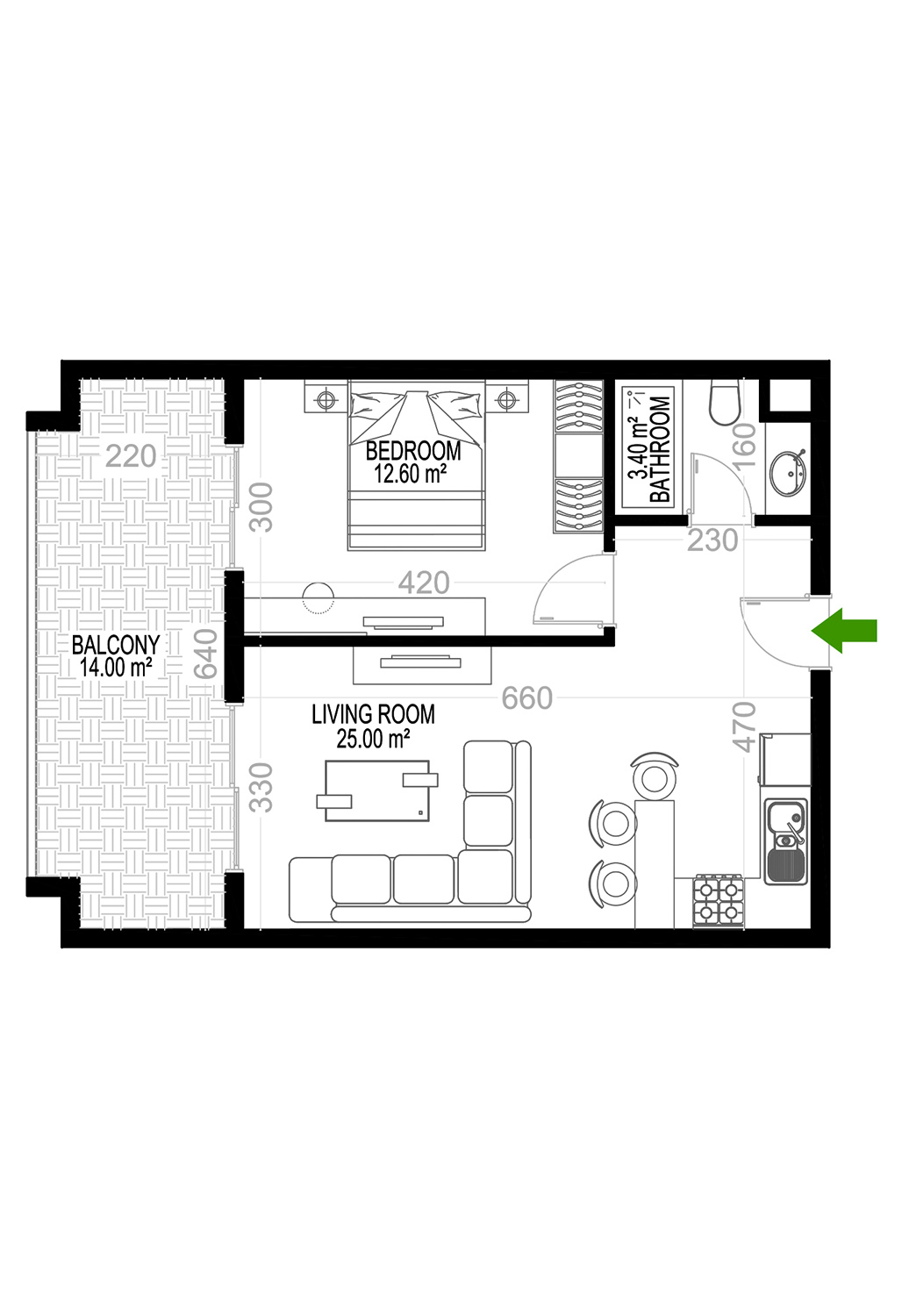 Yekta Kingdom Premium D 1+1 bostadsplan Nr №53 68 kvm
